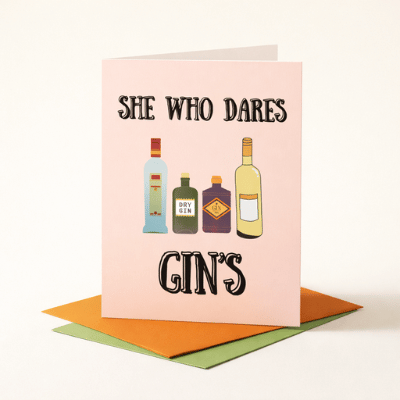 Celebrate boldness and fun with She Who Dares – Gins, the perfect card for someone who loves life and a
